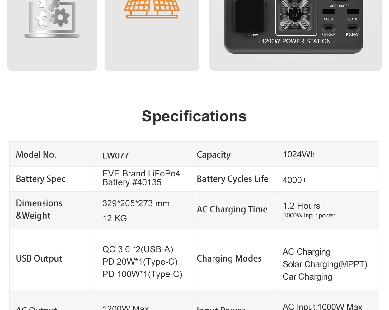 AC Output: 1200W